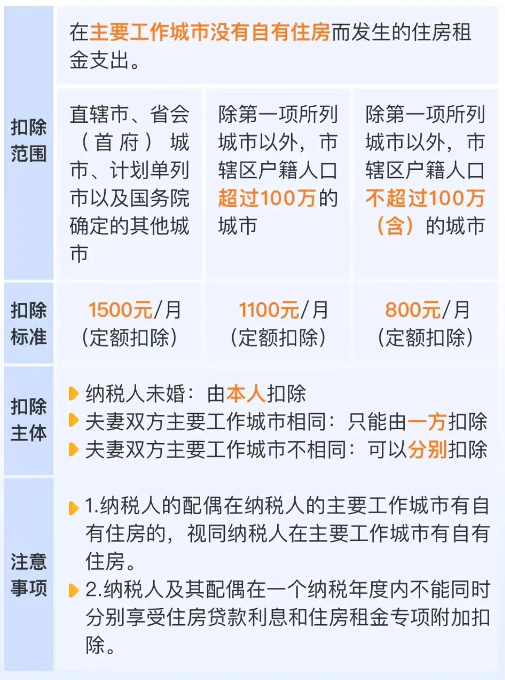 2.点击“住房租金” -选择“扣除年度” -选择配偶情况-阅读温馨提示并点击“我知道了”。