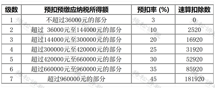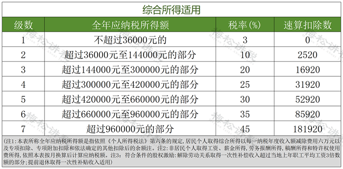 3.综合所得税率表(个税汇算清缴时适用)