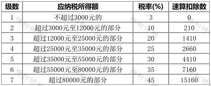 (注:适用税率,以全年一次性奖金收入除以12个月得到的数额对照月度税率表确定)
